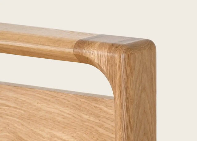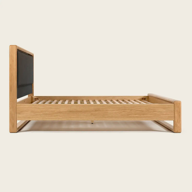 The Avon Bed is a statement of timeless craftsmanship and enduring strength. Crafted from solid premium American oak and walnut, It stands out with its substantial, rounded one-piece leg design, giving the bed exceptional sturdiness while maintaining a bold yet refined silhouette.