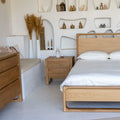 The slanted headboard, set neatly within the frame, provides gentle comfort and an inviting angle for reading or relaxing. Built to last for generations, the Avon blends elegance with solidity, celebrating natural materials and meticulous detailing. For added comfort, you can upgrade with the Luxe Pad headboard cushion.