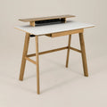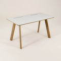 Linoleum Edition: A contemporary, special option featuring a luxurious matte linoleum finish for modern aesthetic. The linoleum is laminated onto the desktop, constructed with a solid oak edge-lipping and a durable engineered wood core. The legs are crafted from solid oak, ensuring a harmonious blend of strength and elegance.
